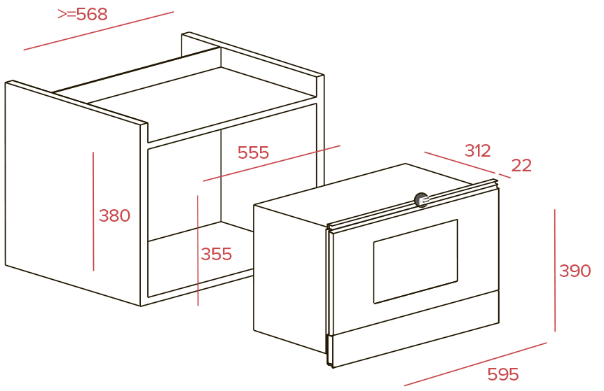 • Высота ниши для установки, см 38